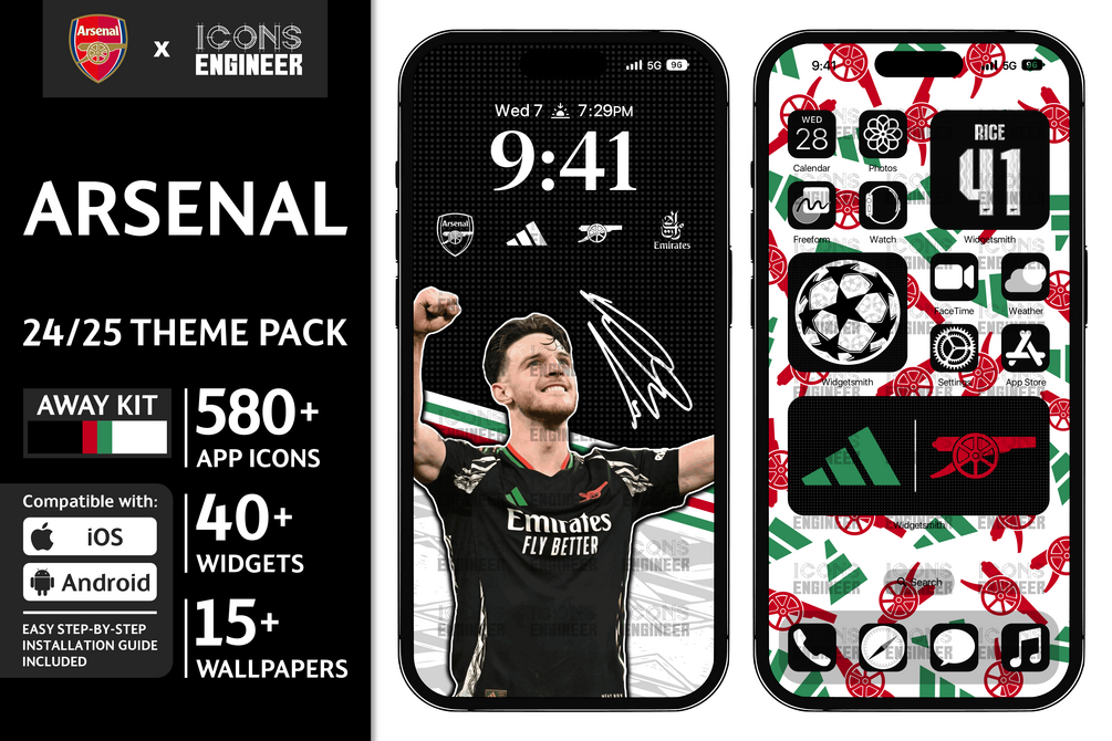 Inspired by the Authentic Arsenal 24/25 Away Kit, this pack features iconic app icons, widgets, and wallpapers to let your phone shine with the glory of the Gunners.