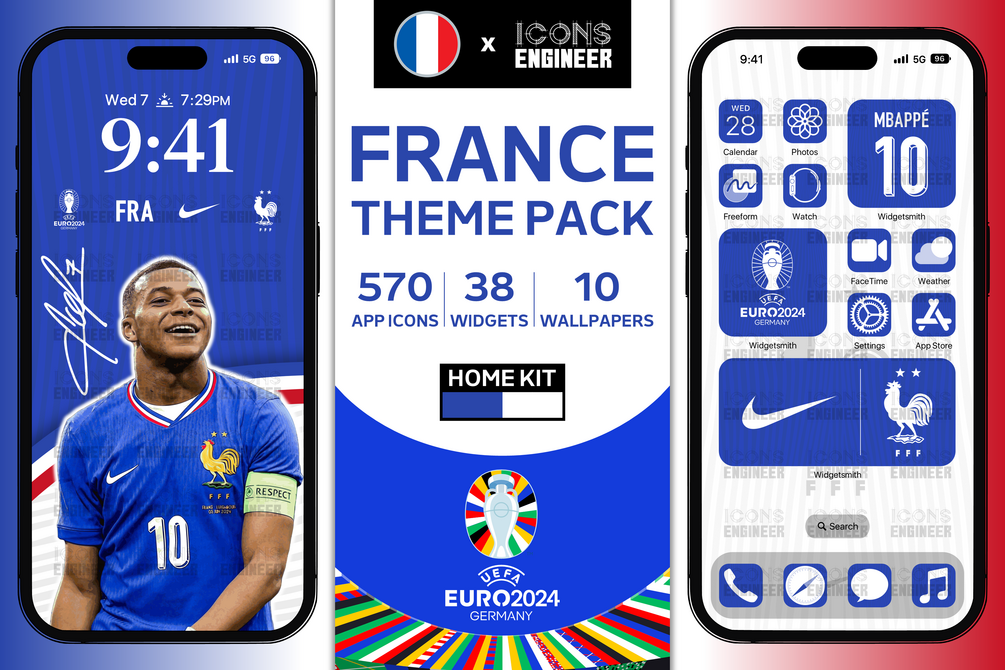 This pack includes all the most emblematic app icons, widgets, and wallpapers, inspired by the Authentic France EURO2024 Home Kit to make your phone shine with the Blues' glory.