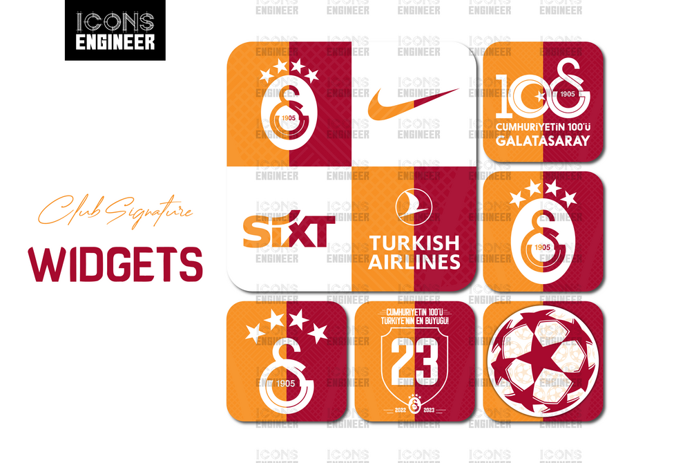 This pack includes all the most emblematic app icons, widgets, and wallpapers. Inspired by the Authentic Galatasaray 23/24 Home Kit to make your phone shine with Galatasaray glory.
