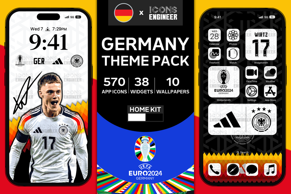 This pack includes all the most emblematic app icons, widgets, and wallpapers, inspired by the Authentic Germany EURO2024 Home Kit to make your phone shine with the Mannschaft' glory.