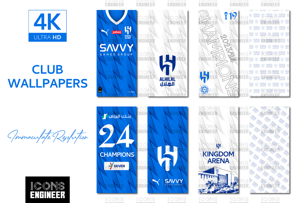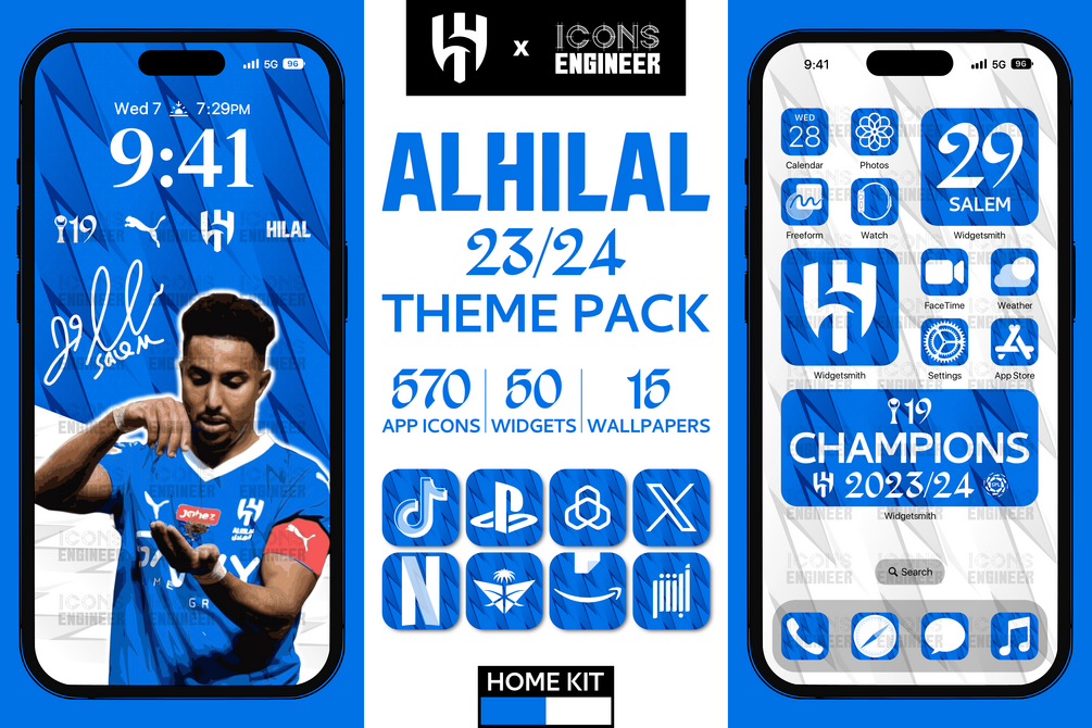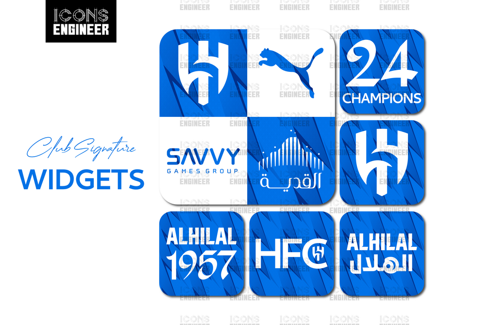 This pack includes all the most emblematic app icons, widgets, and wallpapers, inspired by the Authentic Al-Hilal 23/24 Home Kit to make your phone shine with the Champions' glory.