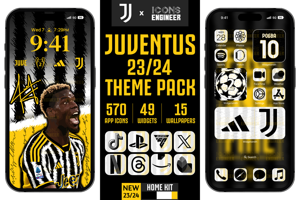 This pack includes all the most emblematic app icons, widgets, and wallpapers, inspired by the glorious Juventus 23/24 Home Kit to make your phone shine with Juventus pride.