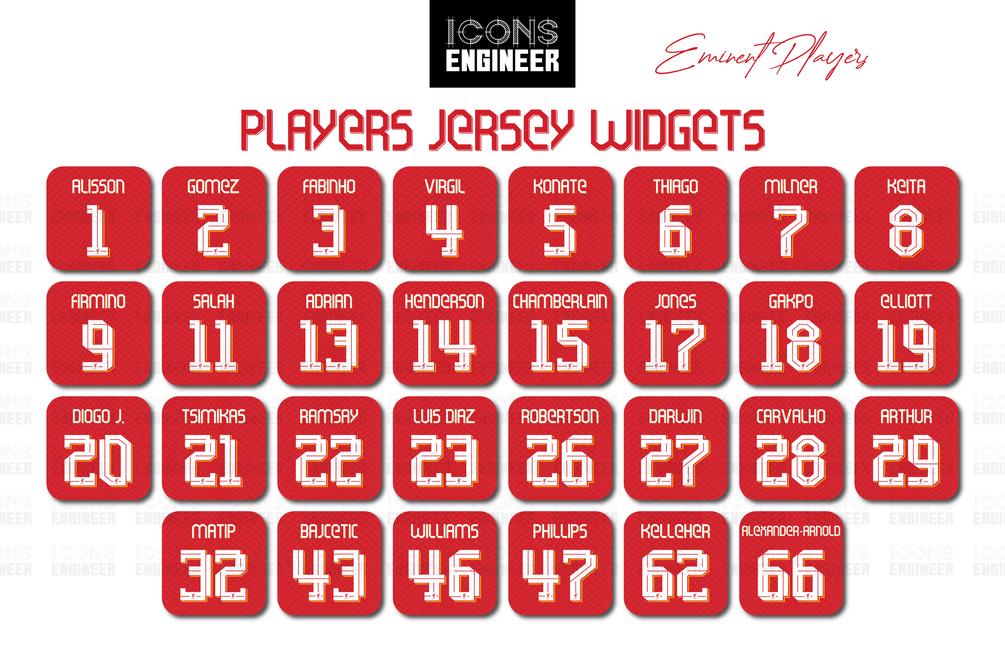 ⇢ [30] Liverpool FC Players Jersey Widgets