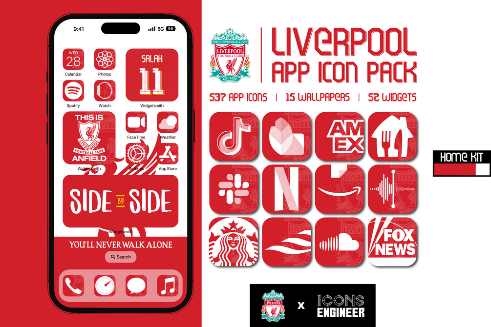 This pack includes all the most emblematic app icons, widgets, and wallpapers, inspired by the Authentic Liverpool FC 22/23 Home Kit to make your phone shine with the Reds' glory.