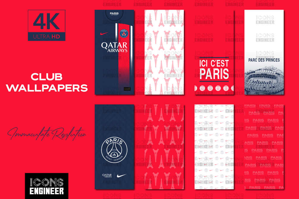 This pack includes all the most emblematic app icons, widgets, and wallpapers. Inspired by the Authentic Paris Saint-Germain 23/24 Home Kit to make your phone shine with the PSG glory.