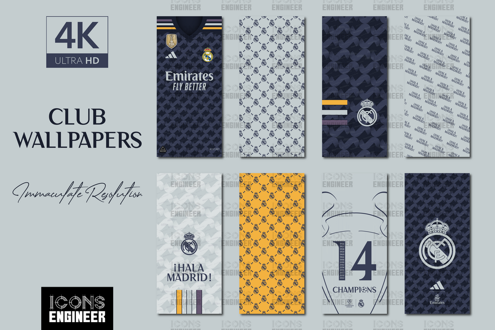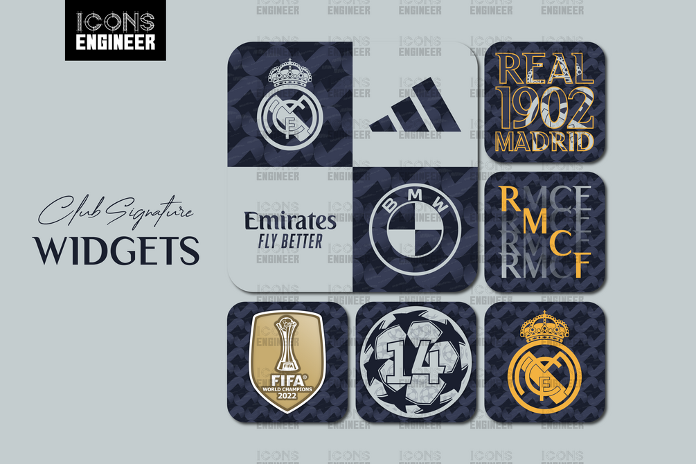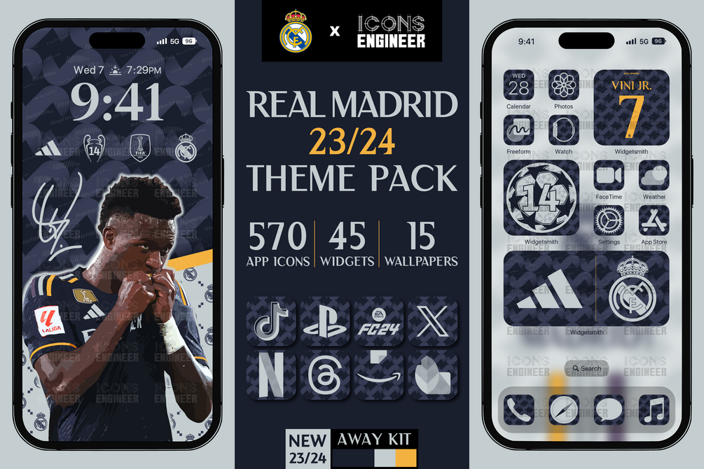 This pack includes all the most emblematic app icons, widgets, and wallpapers. Inspired by the Authentic Real Madrid CF 23/24 Away Kit to make your phone shine with The Los Blancos glory.